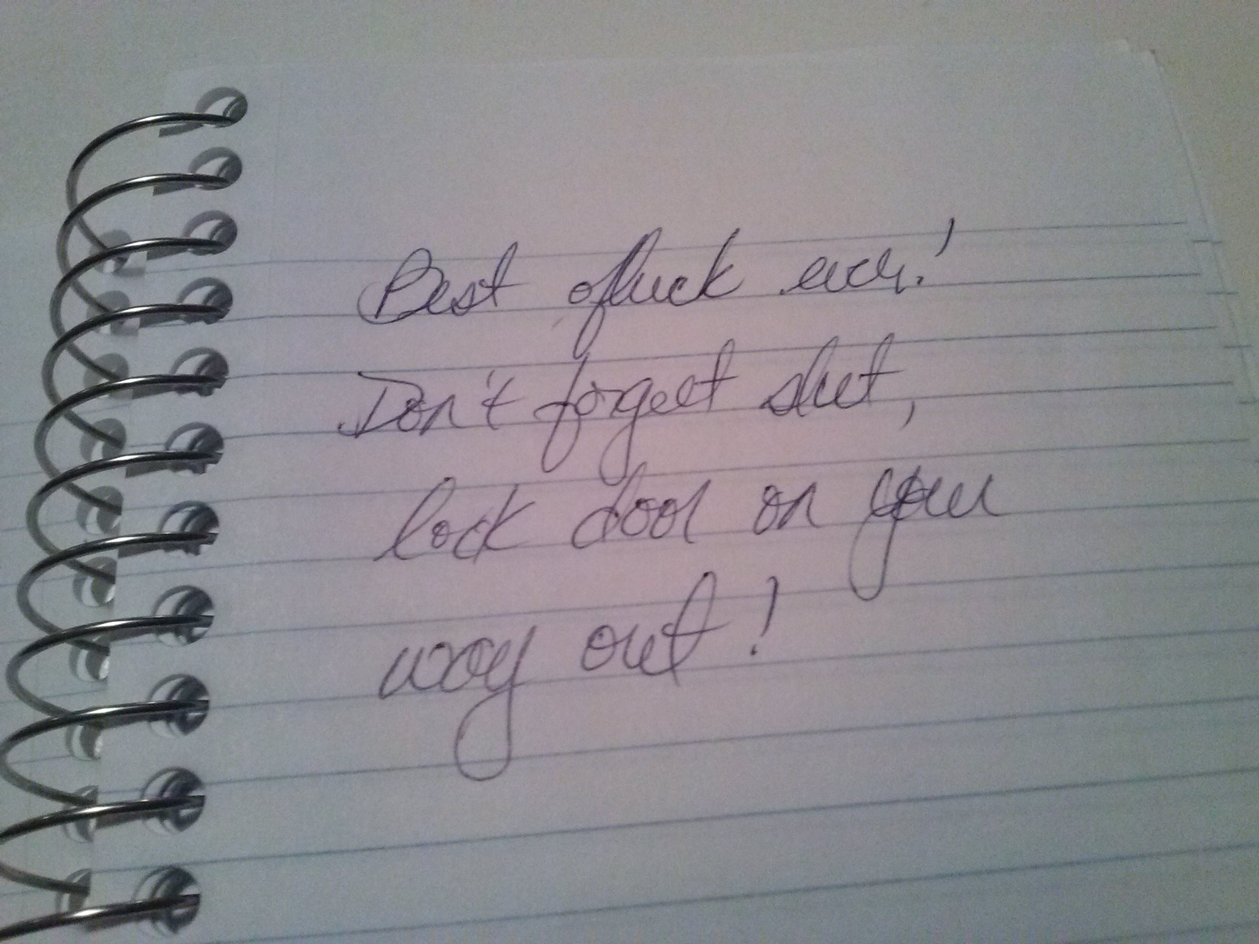 Maybe it’s my lack of penmanship that lost me the girl. Yeah, it was a one night stand, but I really liked her. All I wrote was, “Best of luck ever! Don’t forget shut, lock door on your way out!” And now she’s accusing me of calling her a slut.