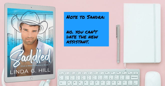 If you like light romantic comedy, hot office flirtations, and a long slow burn, you’ll love Saddled, the first book in Linda G. Hill’s “Once a Week at Woody’s” series.